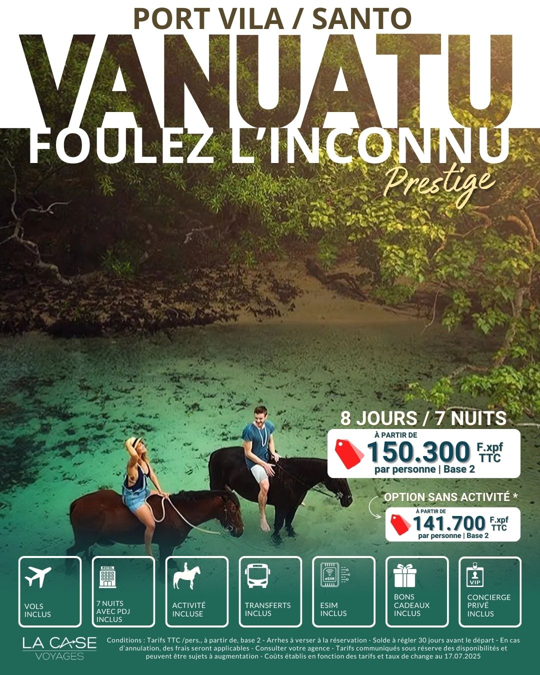 Explorez l’authenticité de Santo à cheval et savourez les paysages paradisiaques de Port Vila.