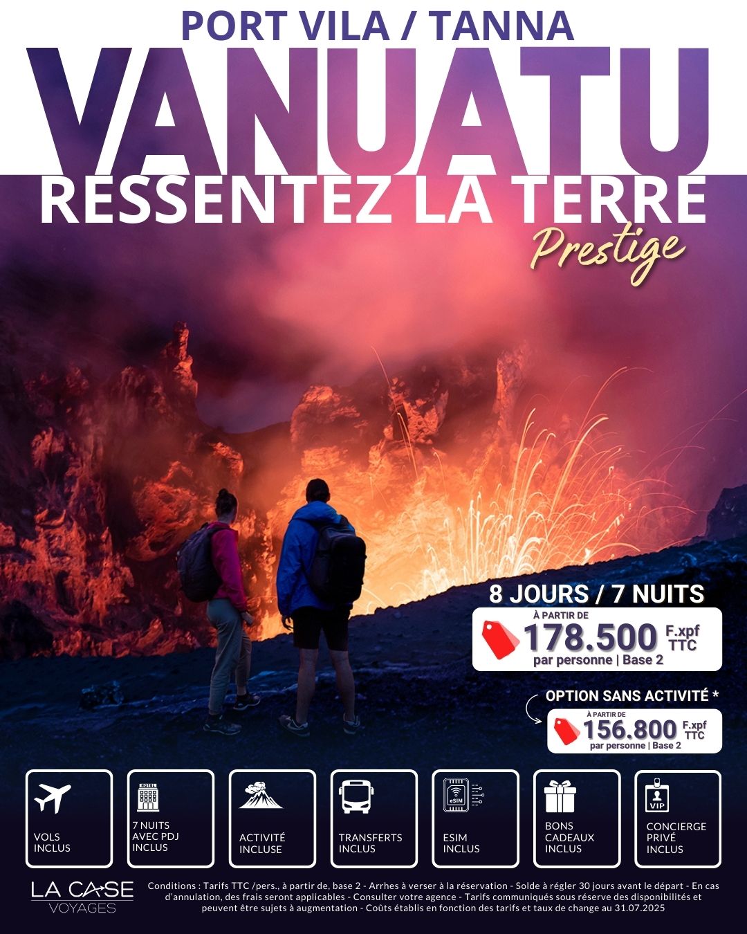 Offrez-vous un séjour inoubliable au Vanuatu avec l’ascension du mythique Mont Yasur sur l’île de Tanna.