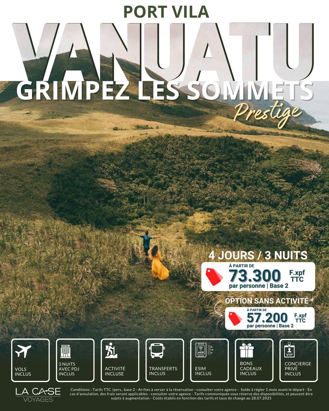 Découvrez nos forfaits tout compris comprenant vols, hébergement et options additionnelles.
